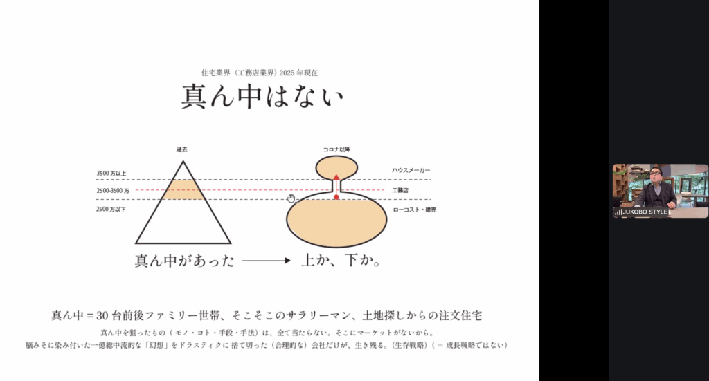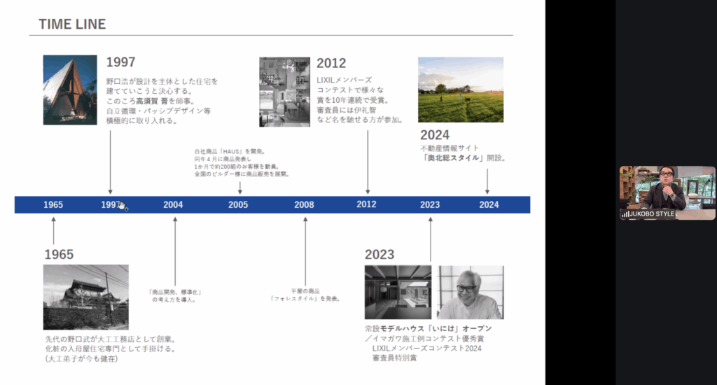 住工房スタイル様が2025年に手がけられた物件を紹介いただき、創業1965年から歩んでこられた経緯、そして、現在の取り組みをお話しいただきました。