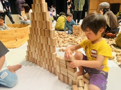 会場いっぱいに広げられたのは、東京おもちゃ美術館からやってきた木のおもちゃ。