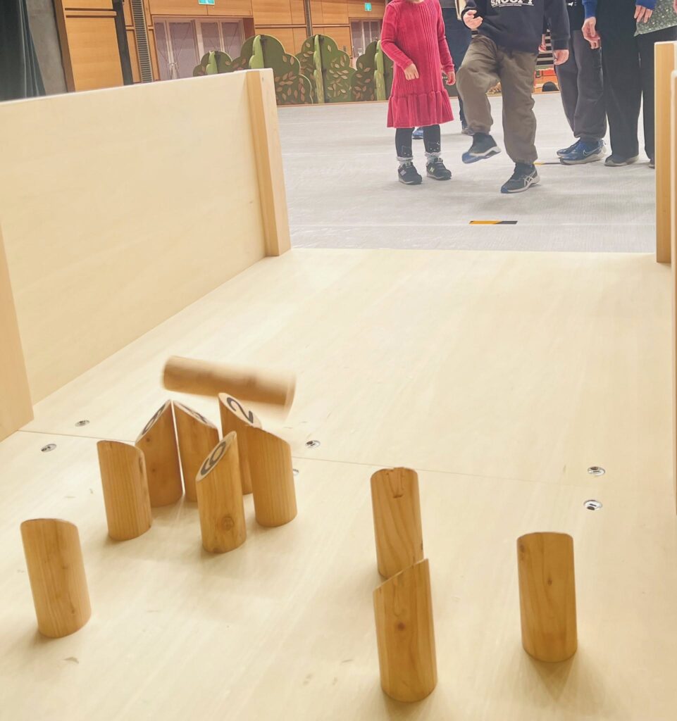 木の棒を投げて点数を競う「モルック」、根気と集中力が勝負の「積み木」など、こちらも大盛り上がりでした。
