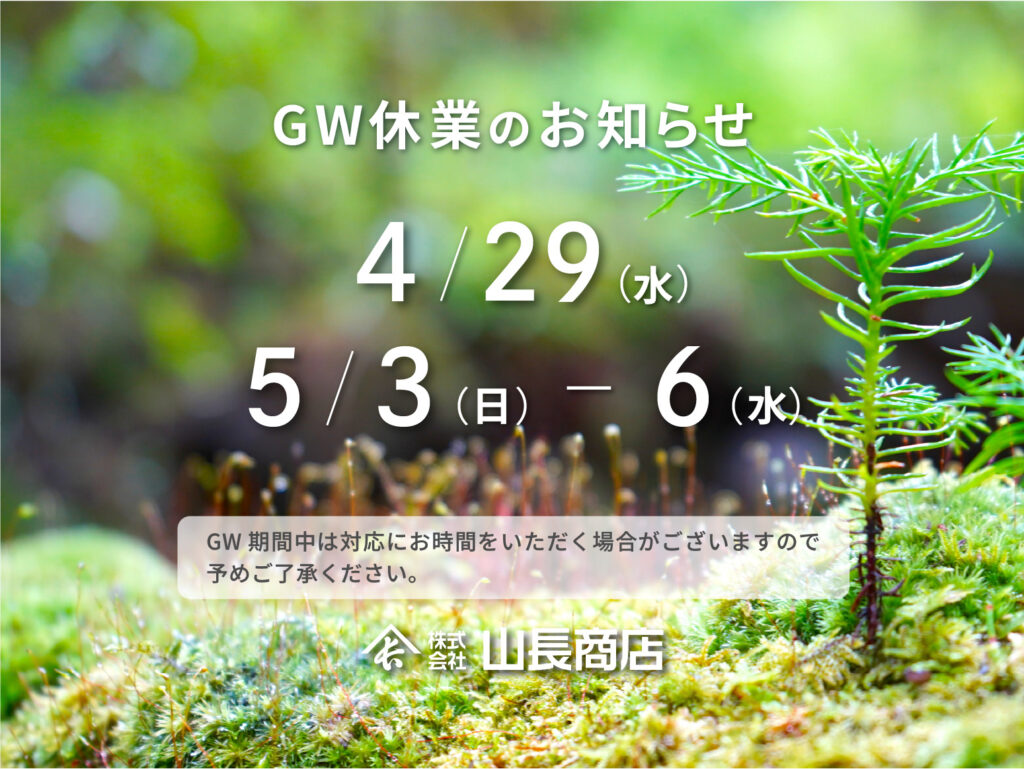 ゴールデンウィーク中は、お問い合わせや配送などの対応にお時間をいただく場合があります。